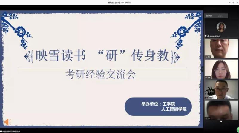2020年,一个不速之客-新型冠状病毒悄然而至,一场突如其来的疫情让全国上下忧心忡忡。在这个大环境下,为落实新冠肺炎疫情期间“停课不停教、延期不延学”的要求,使同学们对考研有更深入的了解,对自己的考研方向有一个清晰明确的定位,坚定考研的信念,距离实现升学深造的梦想更进一步,工学院协同人工智能学院于2020年5月28日开展了“映雪读书,‘研’传身教”线上考研经验交流会。