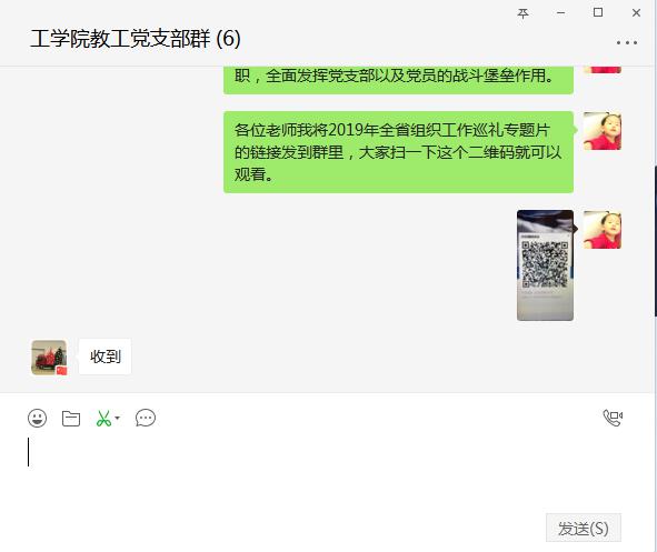 会议最后,于凯同志将2019年全省组织工作巡礼专题片的链接二维码发到微信群里,组织大家进行观看。