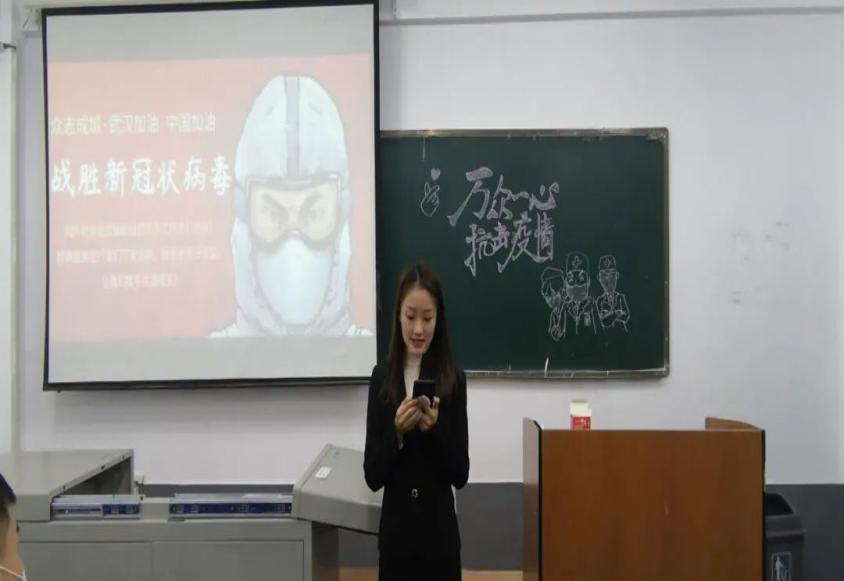 首先,王蕊同学将抗疫故事娓娓道来,说出了疫情对我们的影响。随后,道出了医护人员的辛苦与艰辛。“仁心可治千般病,妙手能传万里情。”