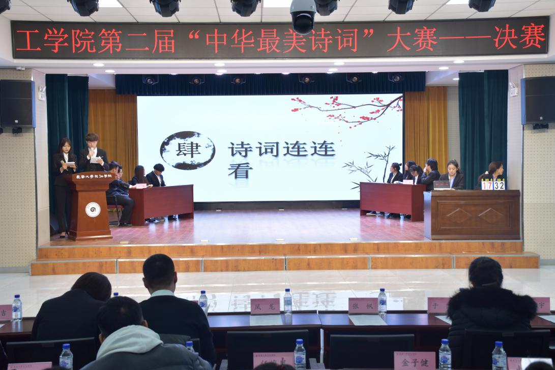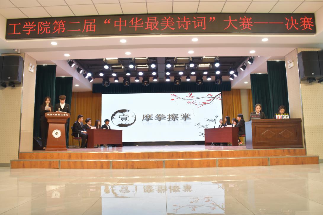 中华古典诗词是我们祖国文化的瑰宝,是中华民族智慧的结晶。2020年12月4日,由我院心蕊志愿者协会主办的第二届“执工匠精神之心,会天下诗词之句”中华最美诗词大赛在大学生活动中心迎来收官之战!