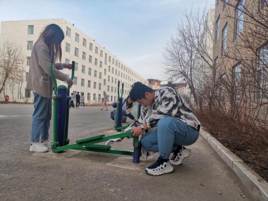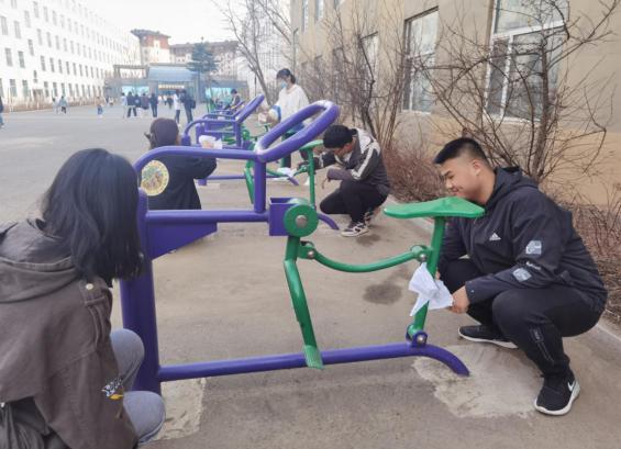 志愿者们来到学子广场,拿起他们早已准备好的工具正在认真的擦拭着健身器材的每个部位。他们的辛苦劳动给学生们营造一个良好的锻炼环境,为学生们的健康护航!