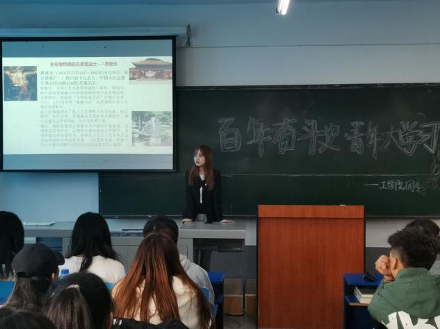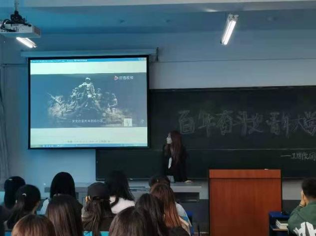 我院团委副书记刘原邑在会议中介绍了中国共产党百年奋斗的光辉历程,放映了一系列党的奋斗视频合集,深刻阐述没有共产党就没有新中国,我们现在的岁月静好,背后都是党在替我们负重前行,从中引导我院同学自觉地强化党的意识、在不断增强党的观念上下真功、求实效。