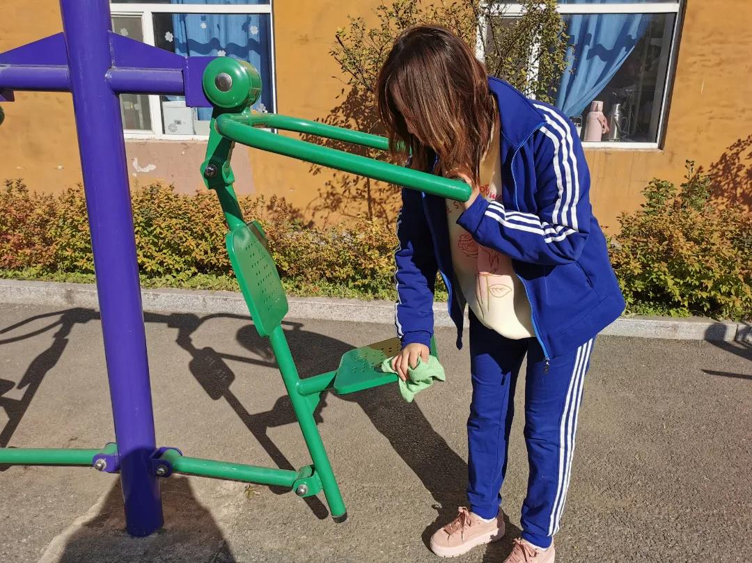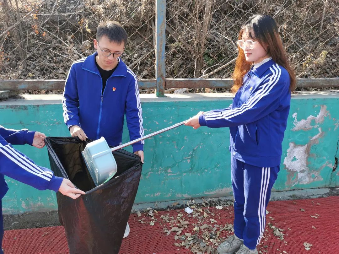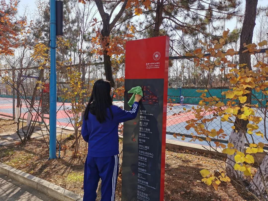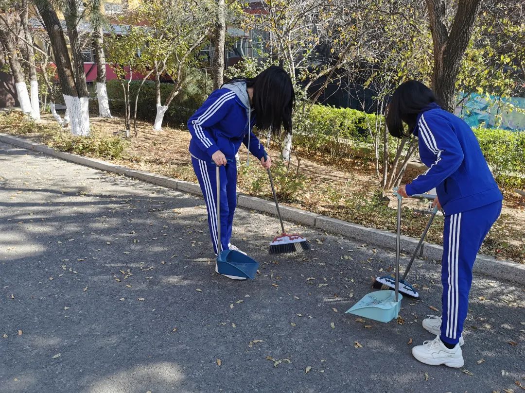 活动中,我院全体学生党员和积极分子身穿蓝色校服,积极主动,尽心尽责。用扫帚清扫校园各个区域沉积的落叶、拾起每个角落被丢弃的塑料瓶、用抹布擦拭着公寓前的体育器材、路口路边的指示牌……他们个个干劲十足,毫不马虎,在合理分工下,大家齐心协力,高效全面建设了美丽校园。
