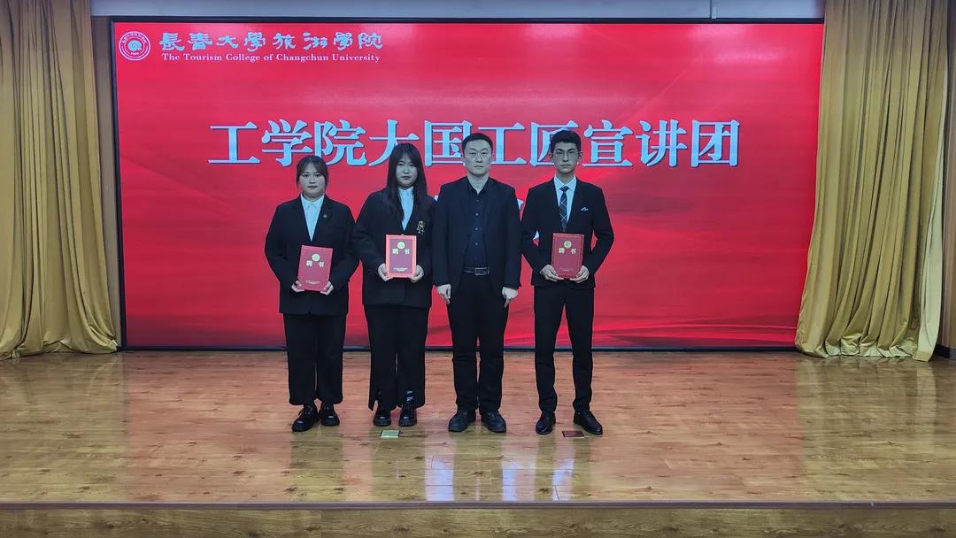 并为获得一等奖和二等奖的三名选手颁发工学院大国工匠宣讲团聘书。
