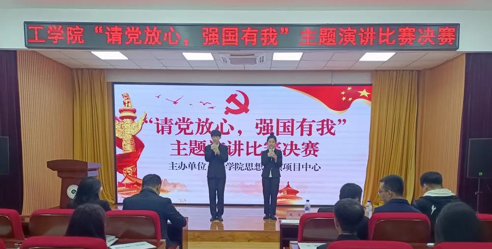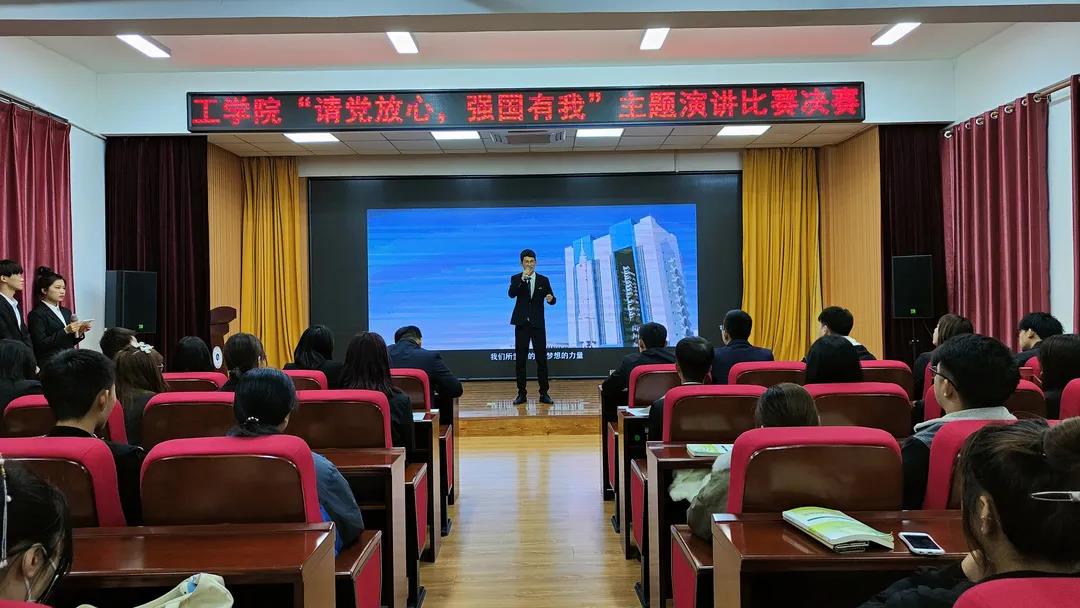为更好的重温党的光辉历程,歌颂党的伟大成就,进一步增强学生对党史的学习教育,工学院思想引领项目中心于10月27日在筑梦报告厅隆重举行“强国有我,请党放心”主题演讲决赛,工学院党总支书记凤龙、团委书记奚亮、教工党支部书记郑浩东、辅导员侯云艳出席了本次活