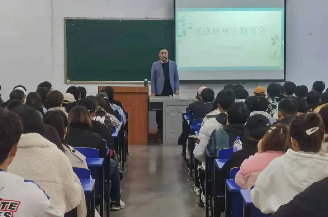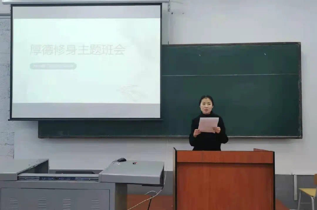 为培养学生良好的生活习惯和行为习惯,提高学生的思想道德素质和文明修养水平,我院于11月2日在教学楼开展“厚德修身”主题班会,我院全体辅导员以及全体学生参加了此次班会。