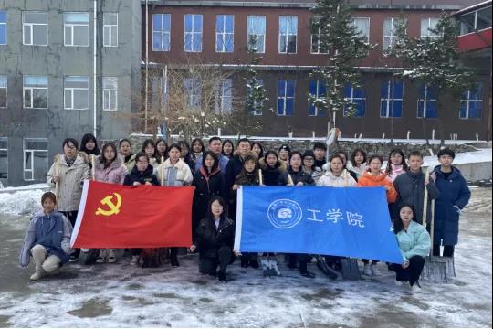 为及时清除校园道路的积雪,避免路面结冰带来的安全隐患,充分发扬党员的团结协作、无私奉献精神,把“三亮、三比、三争”的学习成果引入实践中,工学院学生党支部于11月11日组织全体党员开展积雪清扫活动。