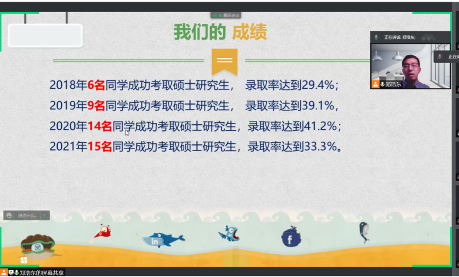 紧接着,郑浩东老师对如何报考院校,如何制定学习计划和如何掌握考研复习方法进行了详细讲解。最后他表示,在考研阶段坚持才是成功上岸的秘诀。