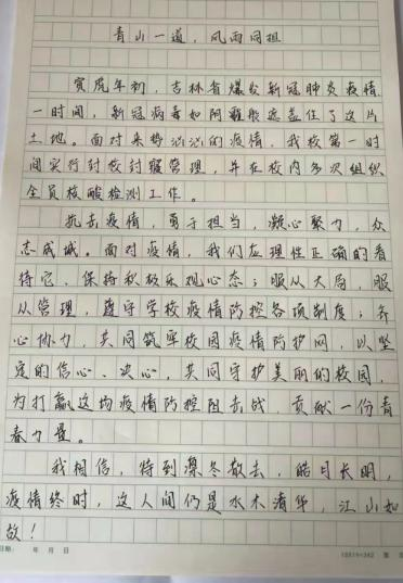上网课,听新闻,大家都开始了云端学习的新模式,超市不再拥挤,路上的行人戴着口罩,悉悉索索,就连天气仿佛都冷了一些。在疫情面前,虽然正常的学习和生活轨道被打乱,师生都被卷入疫情的漩涡中,但此时此刻,全校上下勠力同心,大家都在用坚定的行动诠释着必胜的信心。