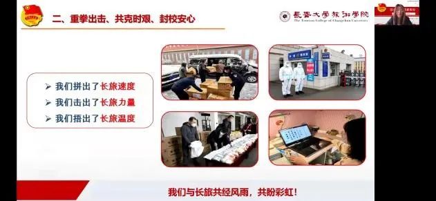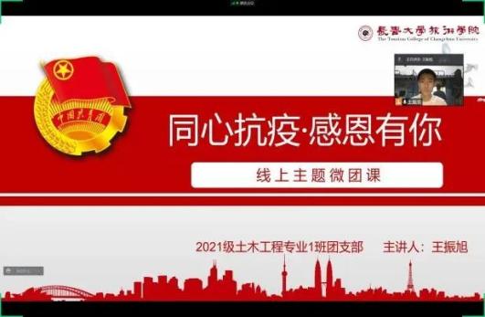 此次线上主题团课的开展,不仅提升了同学们的防疫意识,增强了同学们的责任感与使命感,更进一步培养了同学们的感恩之心,激发了同学们的感激之情。山有峰顶,海有彼岸,同心抗疫,感恩有你,让我们一起静待长旅春来之时,繁花与共!