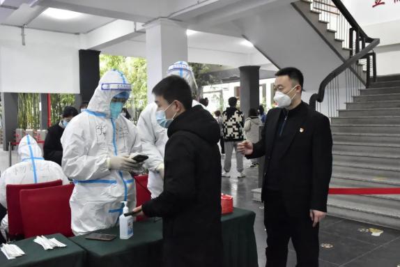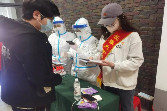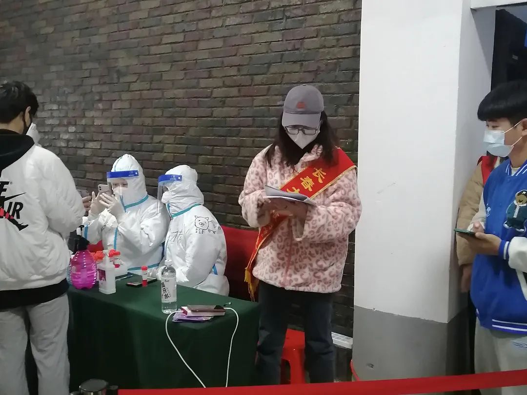 在核酸检测过程中,党员先锋突击队的队员们协助现场核酸检测工作信息录入、现场疏导、扫码测温。不畏辛劳真诚奉献,为疫情防控注入暖心力量。