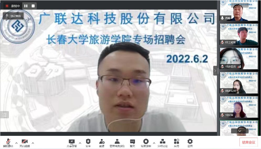 此次招聘会,张茂先生通过腾讯会议屏幕共享PPT的方式对广联达科技股份有限公司的基本情况作了介绍,同时也对此次招聘岗位以及职业发展路线进行了详细讲解。张茂表示广联达公司不仅拥有年轻化团队、全产业职业发展平台和多轨道职业发展通道,还有完善的薪酬福利制度和人才培养体系。随后,他针对同学们提出的相关问题做了详细解答。整场招聘宣讲会有序、互动、高效。