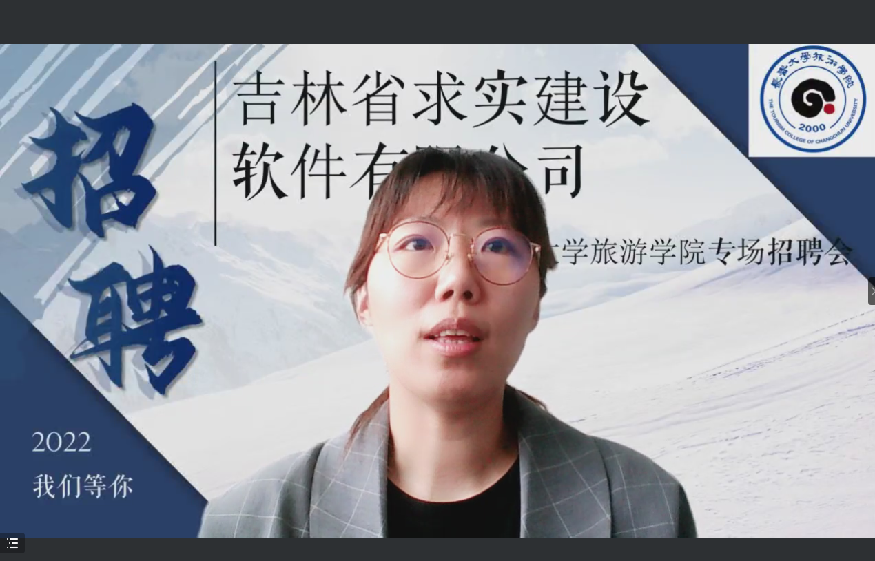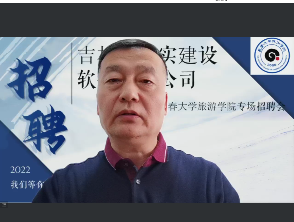 高峰首先对吉林省求实建设软件有限公司此次线上宣讲表示热烈欢迎,自2018年建立校企合作关系以来,吉林省求实建设软件有限公司每年均来校招聘,选聘适合的学生到公司实习及就业,希望同学们抓住机会,找到适合自己的发展平台。