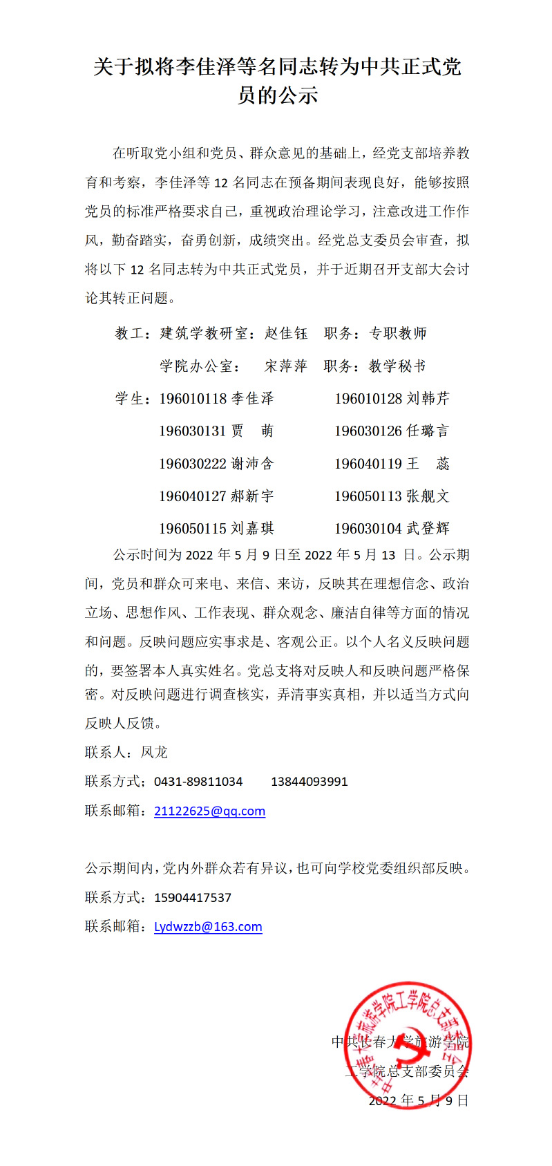 关于拟将李佳泽等名同志转为中共正式党员的公示