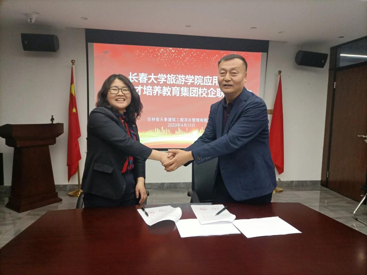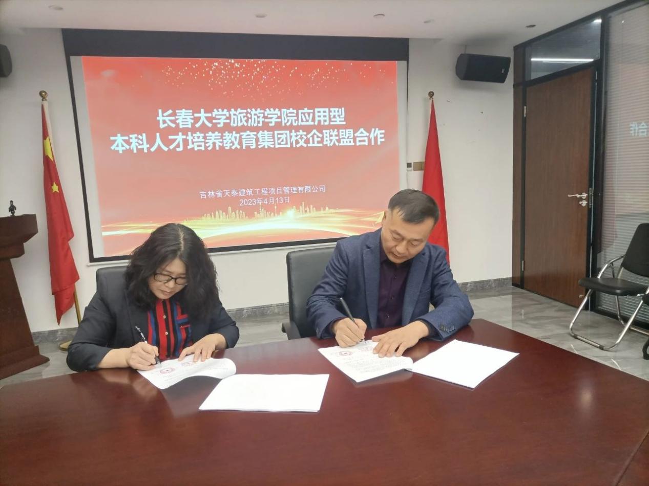 高峰对吉林省天泰建筑工程项目管理有限公司的热情接待表示感谢,并对工学院专业设置、实践教学改革、人才培养、实习就业等情况进行详细的介绍。同时,双方就成立校企工作室、校外实训基地、校企课程共建等方面达成了初步意向,签订了校企合作协议。
