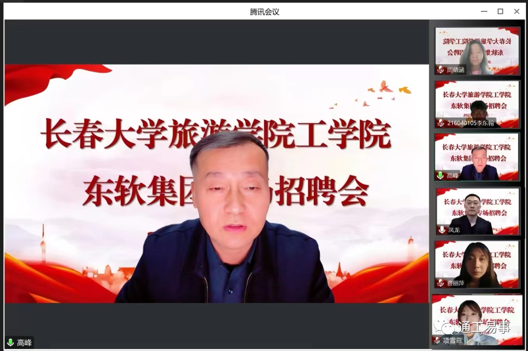 为切实落实我院2023届毕业生就业工作,实现毕业生高质量就业。413日,我院通过腾讯会议线上成功举办东软集团专场招聘会,东软集团吉林地区校企合作负责人区域总经理袁璐璐,东软集团HR主要负责初级人才招聘及校招储备经理刘丹,学院院长高峰,党总支书记凤龙,辅导员刘畅及我院160余名毕业班学生参加了本次会议。