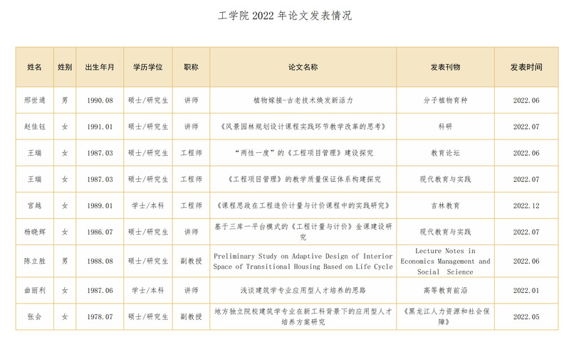 工学院2022年论文发表情况