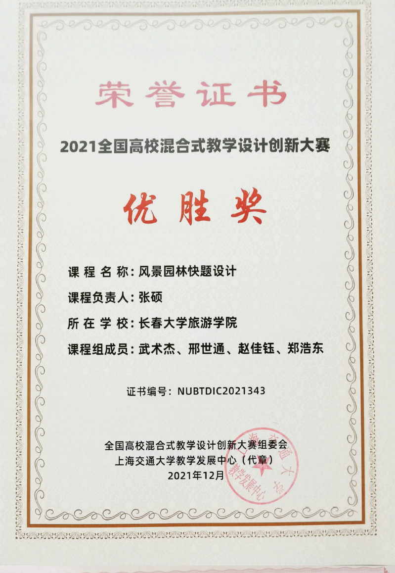 风景园林专业获得2021全国高校混合式教学设计创新大赛优胜奖