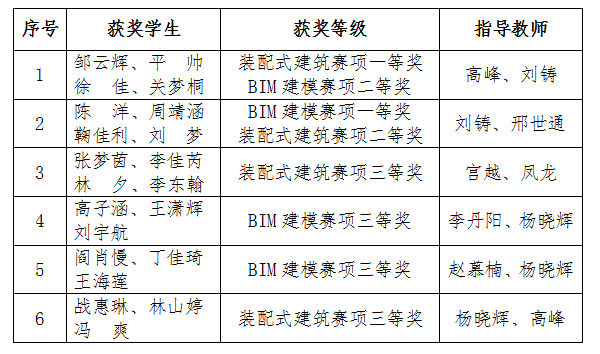 第五届吉林省高等院校数字建筑应用技能大赛获奖名单
