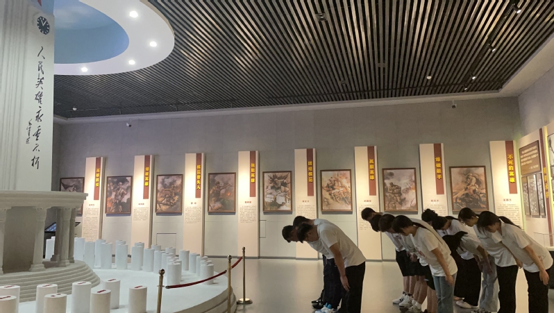 我院党史宣讲团成员王怡宁对四平战役相关史实进行了详细介绍,带领全体师生回顾了先辈们顽强不屈、英勇奋斗的烽烟历史,重温了那段难忘的峥嵘岁月,使全体师生了解到四平这座在战火中涅槃重生英雄城市的历史回响,从序言厅、战史厅、支前厅、英烈厅到半景画馆,纪念馆内通过岁月痕迹的珍贵文物、生动真实的复原场景还原着当年英雄们奋勇向前的壮观场面。