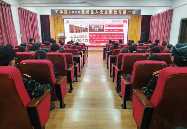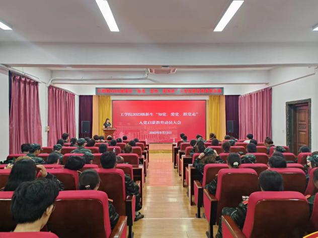 为切实做好2023级新生入党启蒙教育工作,加强大学生入党启蒙教育,强化党的宗旨意识,培养广大青年学子的社会主义核心价值观,也为推动我院新生对中国共产党的了解,引导更多优秀学生加入中国共产党。9月12日,工学院学生党支部在筑梦报告厅开展2023级新生“知党、爱党、跟党走”入党启蒙教育动员大会。工学院党总支书记凤龙以及2023级全体新生出席了本次活动。本次活动由2023级新生辅导员张晏嘉主持。