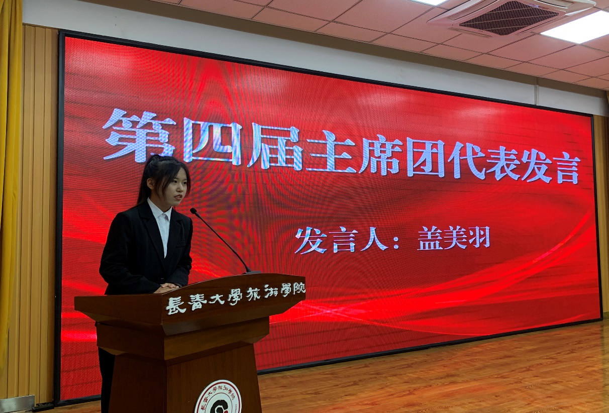 第三届党建服务中心主席崔影对过去一年的工作进行总结,并希望第四届党建服务中心的成员们能够共同携手,为党建服务中心的发展贡献自己的力量。