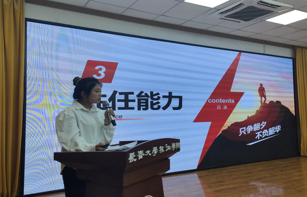 竞选环节分为个人演讲、现场提问两个部分,各位竞选者依次上台从自我介绍、岗位认知、竞争优势及任职工作计划四个方面进行陈述,在总结各自部门工作成效和存在的问题基础上,展示自我竞选优势,用最真诚的话语和态度来表达自己作为学生干部为学生服务的决心,希望他们未来能够遵守竞选承诺,在学院领导和老师的带领下,携手并进做出令师生满意的优秀成绩,为工学院高质量发展贡献力量。