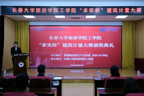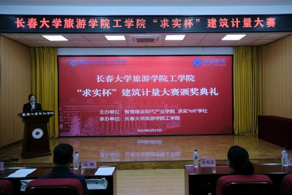 为扎实推进学校教育教学评价工作,巩固智慧建设现代产业学院在校企合作育人方面取得的重要成果,进一步推动学院实践育人发展进程,工学院于5月23日举行“求实杯”建筑计量大赛颁奖典礼。吉林省求实建设软件有限公司校企事业部总经理焦明晶、总监王佳建,工学院院长高峰、党总支书记凤龙、副院长董峻岩及师生代表参加颁奖典礼。典礼由工程造价专业教研室主任杨晓辉主持。