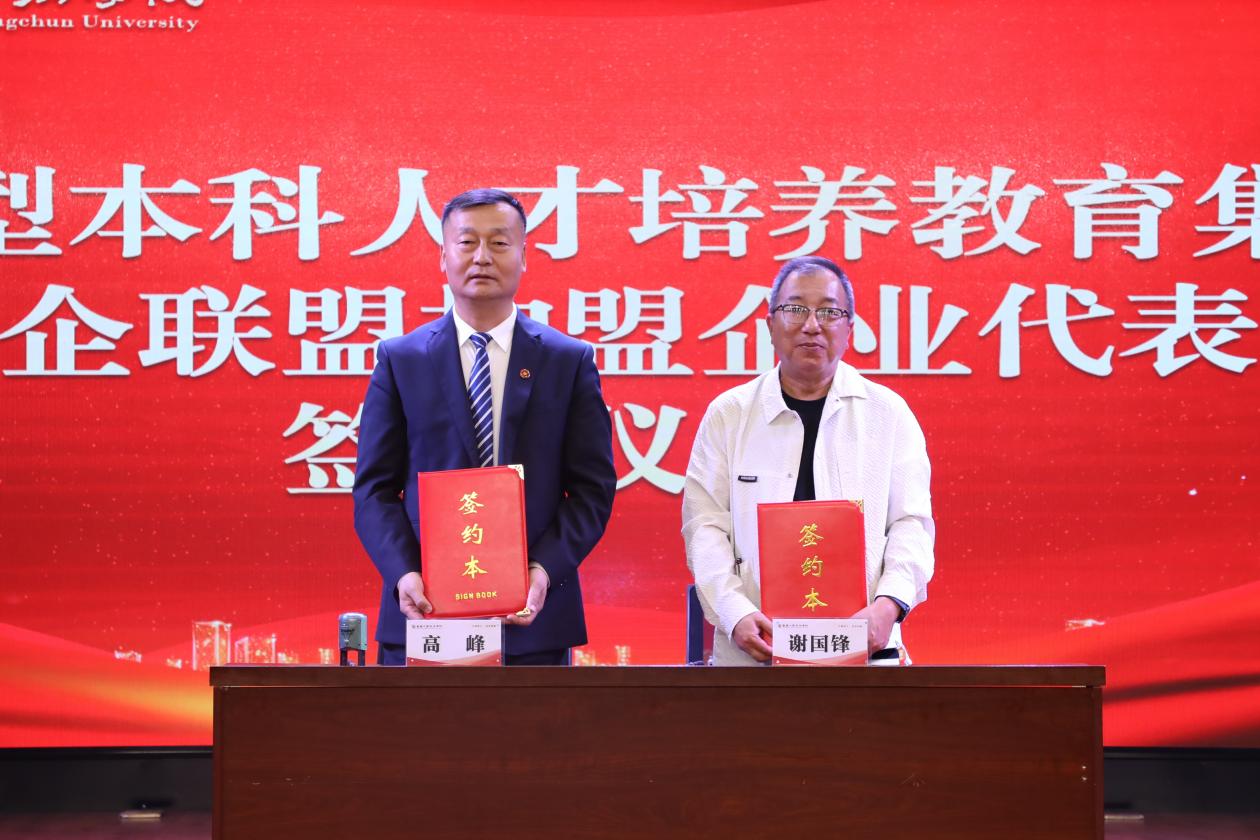 随后,举行了应用型本科人才培养教育集团校企联盟签约仪式。高峰代表学院分别与吉林省钜恒工程项目管理有限公司、吉林省源德建筑工程有限公司、吉林省众拓园林设计有限公司、中创时代(吉林)规划设计管理集团有限公司、品茗科技股份有限公司、吉林省亨通建设工程有限公司共同签订了6165cc金沙总站检测中心应用型本科人才培养教育集团校企联盟合作协议书。
