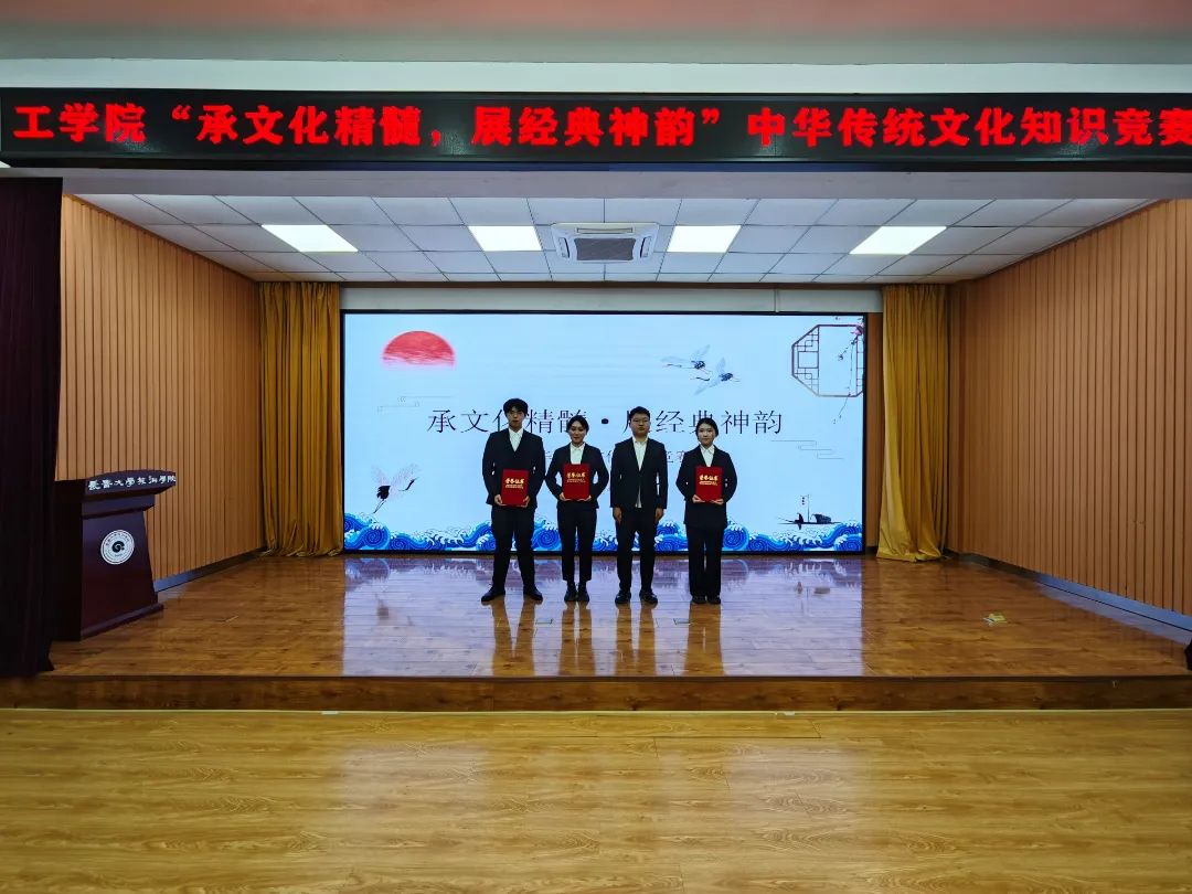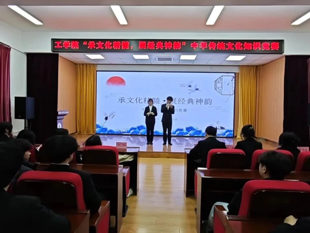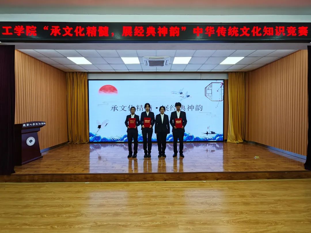 比赛过程中,选手们鼓足干劲,通过对诗词书画、古乐儒学等传统文化知识的理解和掌握,展现出了极高的知识储备和良好的应变能力,精准而深入的回答赢得了观众和评委的阵阵掌声,展示了工学院学子对中华传统文化的深厚理解和独特见解。各代表队成员相互配合、敢于拼搏,展现出良好的文化素养和勇于奋斗的精神风貌。