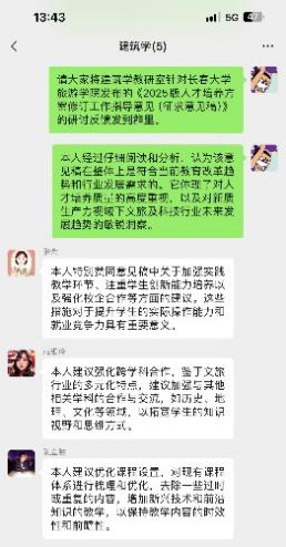 随后,臧老师针对此次征求意见稿发表了看法,她建议新版人才培养方案要强化跨学科合作,鉴于文旅行业的多元化特点,建议加强与其他相关学科的合作与交流,如历史、地理、文化等领域,以拓宽学生的知识视野和思维方式。
