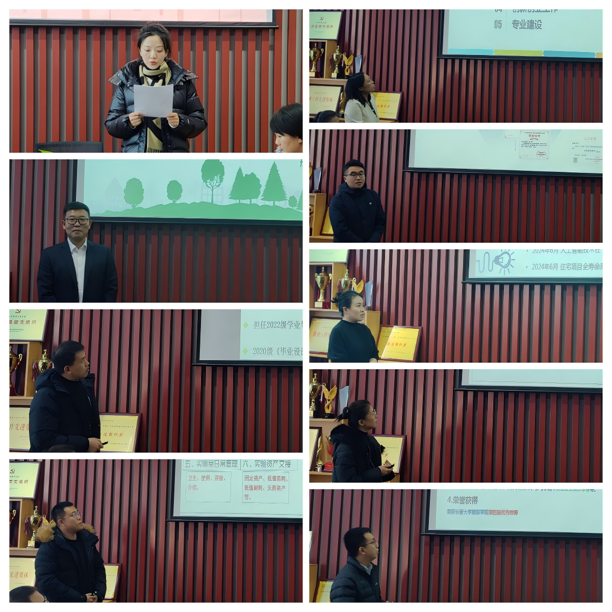 随后,办公室主任王佳媛介绍评优规则。各位教职工依次进行述职汇报。每人汇报时间为3分钟,老师通过PPT从教学、教科研、个人成长及不足与展望几个方面展示出自己的工作成果与思考。
