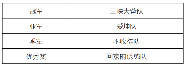 经过初赛、决赛的重重比拼,决出冠军、亚军、季军、优秀奖。