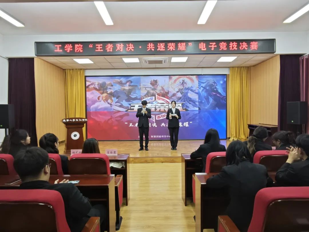 为丰富学生课余生活,培养学生的团体合作精神,推动同学们对电子竞技的良好认知。10月23日,工学院智慧团建项目中心在筑梦报告厅举办“王者对决,共逐荣耀”电子竞技比赛决赛,第十届主席团成员出席了本次活动并担任评委。本次活动由王楠、张鑫主持。