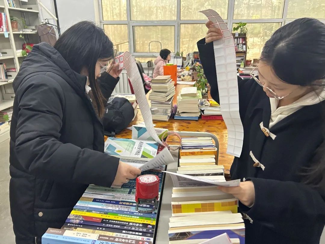 在馆内老师的认真指导下青年志愿者们对图书馆的书籍进行了分类和编码,并且贴上了图书标签,这不仅便于图书盘点与定位,还能一定程度上防范图书被盗。此外,志愿者们分工明确,有条不紊地穿梭于书架之间,认真完成图书分类、整理和上架工作,将一本本图书准确放置到相应位置。