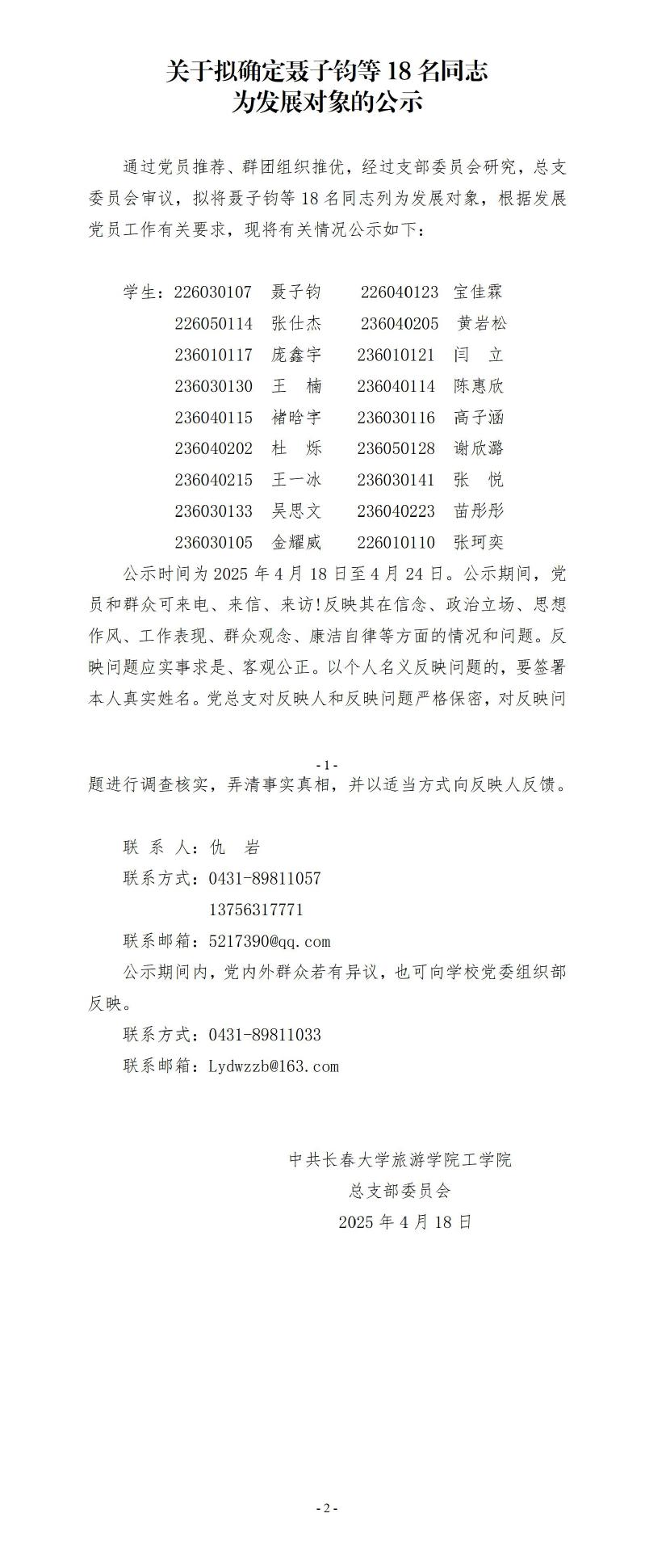 关于拟确定聂子钧等18名同志为发展对象的公示