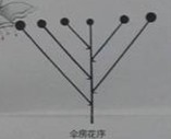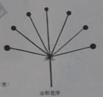 无限花序(花轴无分枝)有哪几种类型?用简图区分伞形花序与伞房花序,总状花序与穗状花序。