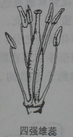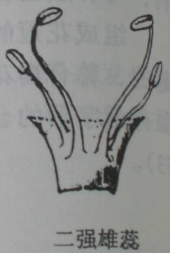 雄蕊类型有几种?用简图区分二强雄蕊于四强雄蕊。