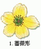 蔷薇形:花瓣彼此分离,称离瓣。蔷薇科的花,花冠离瓣,5出数,雄蕊多数,形成幅射对称形的花。