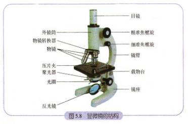 (4)转动粗调螺旋使镜筒下降,此时头偏左侧,注视镜筒徐徐下降,直至靠近玻片为止。(注意不能接触玻片,特别注意不能碰撞以防碰坏物镜
