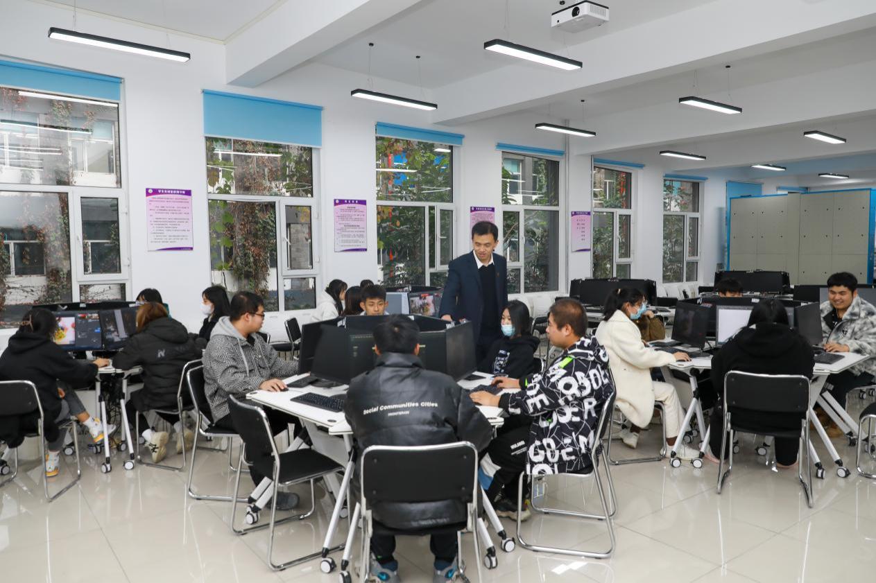 智能建造专业教师在BIM技术实验室指导学生进行BIM培训