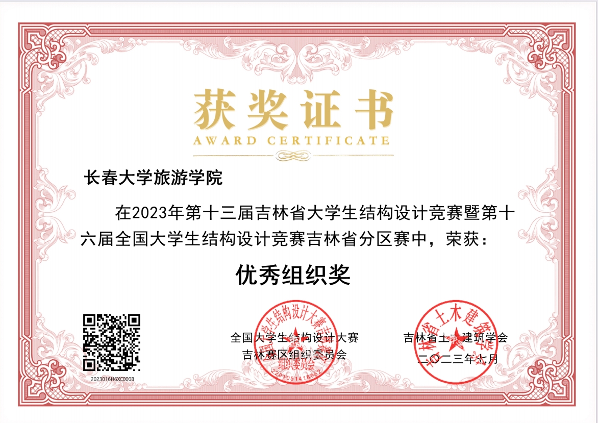 16.2021年吉林省大学生结构设计大赛,取得一等奖一项 ,二等奖一项,并获优秀组织奖。