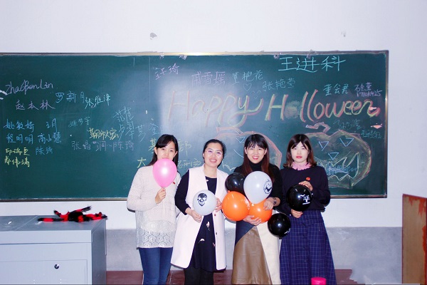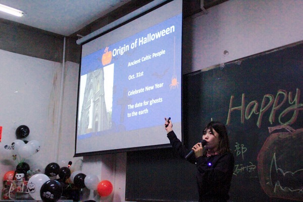 为了提升学生英语学习的兴趣和跨文化交际能力,基础部大学外语教研室于10月31日晚在教学楼4楼中厅举办了万圣节活动。此次活动由大外教研室的李维伟老师主持,王落茹、黄雪松、刘爽、刘丹老师参与组织。活动现场气氛热烈高昂、环节安排紧凑高效,知识性强,学生积极配合,实现了活动目的。