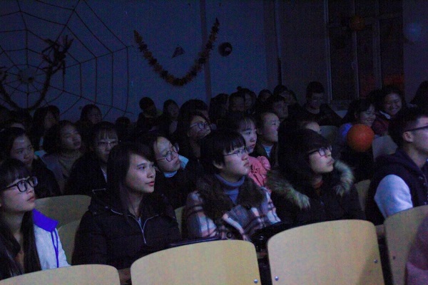 此次万圣节活动充分体现了大学教学目的:提高学生的听、说、读、写、译和跨文化交际的能力。5位教师的中英讲解清晰并充满趣味性,活动现场的学生人数爆满,热情洋溢。此次活动包括4个环节。第一环节是气氛渲染,学生在教师的引导下喊英文口号,通过万圣节传统习俗“trick or treat”进入兴奋状态。第二个环节由李维伟老师讲解万圣节知识,包括节日起源、节日习俗、传统食物及节日象征。在讲解南瓜灯的习俗时,通过表演话剧增强学生理解,激发学生的想象力。第三个环节是节日传统游戏,包括词汇抢答、蒙眼画南瓜和咬苹果。游戏环节能够增进和检验学生是否已经掌握本次活动的知识。最后是由教研室主任王落茹老师致辞总结,并让学生在黑板上写下名字,拍照纪念。本次活动圆满结束,不仅使学生学习了西方文化知识,而且提高了学生英语学习的积极性。