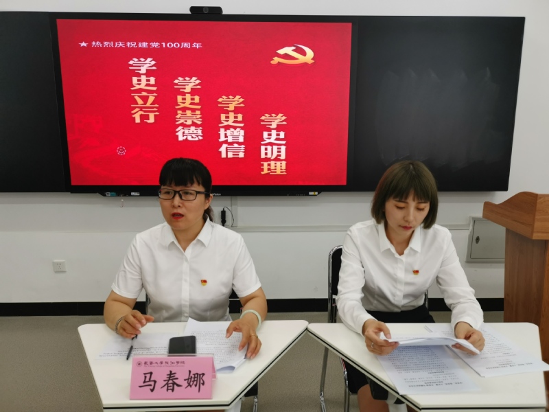 会议第一项,基础部党总支书记马春娜通报了基础部党支部开展党史学习教育情况。