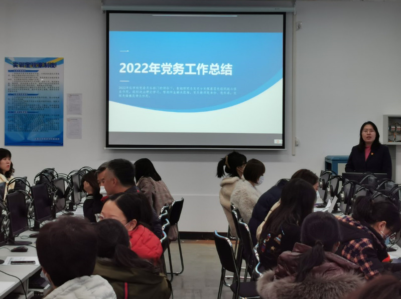 首先,基础部党支部副书记王落茹从做好日常基层党建工作和紧扣基层职责职能,助推融合发展两个方面对2022年党务工作进行总结,为规范基础部党建工作奠定基础。
