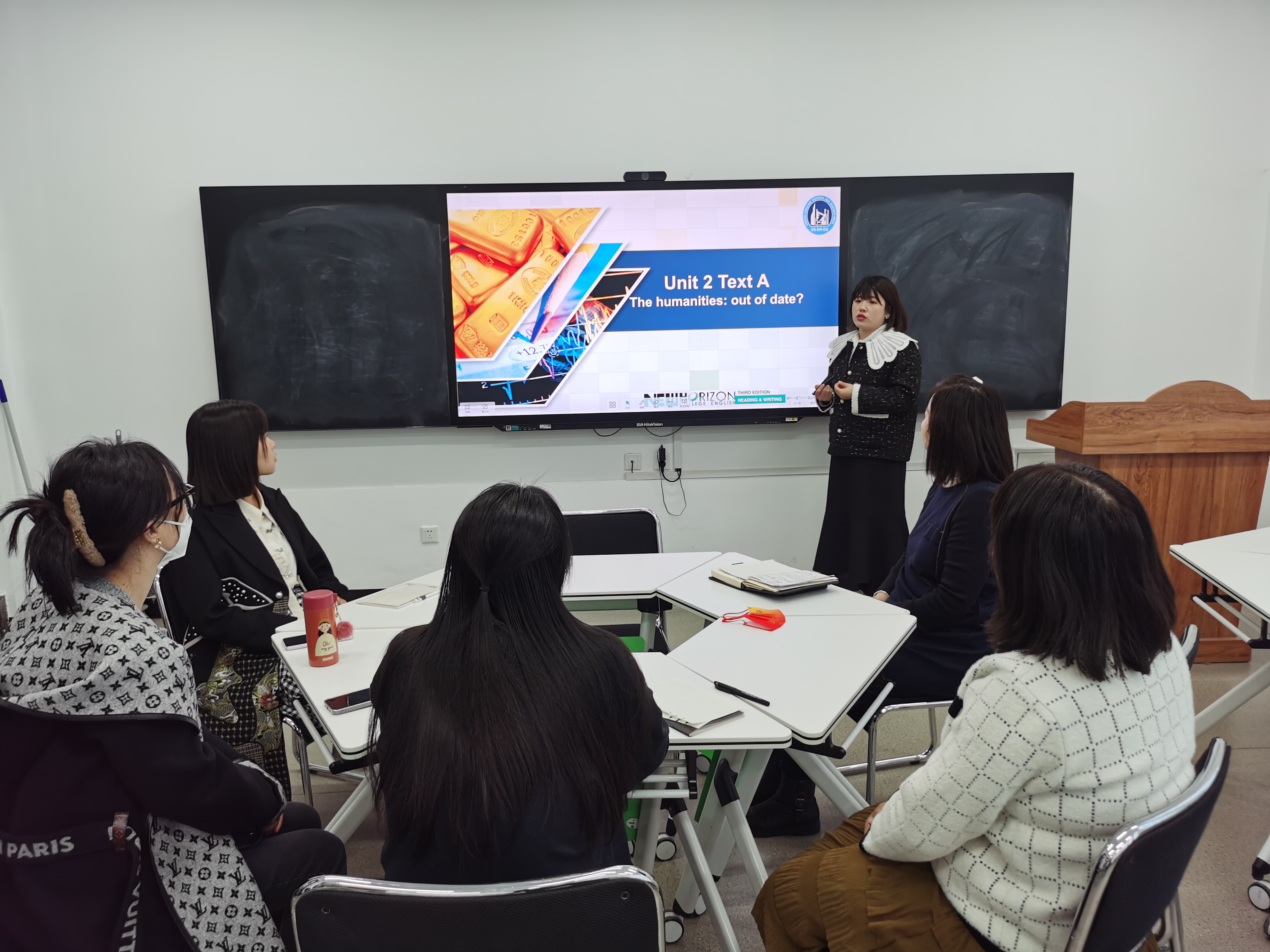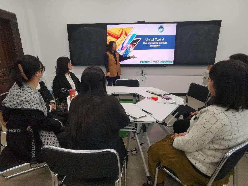 会上,孙光宇首先介绍了本学期课程组的整体授课思路和后续工作计划。王落茹老师以《新视野大学英语读写教程》第四册第二单元课文The confusing pursuit of beauty(令人困惑的对美的追求)为例,就单元教学目标就行了补充分析,并重点对单元内容、单元主题的导入进行了思政挖掘,让学生对生命的美好以及对女性的尊重都有了深刻的理解,有利于帮助学生树立正确的价值观。