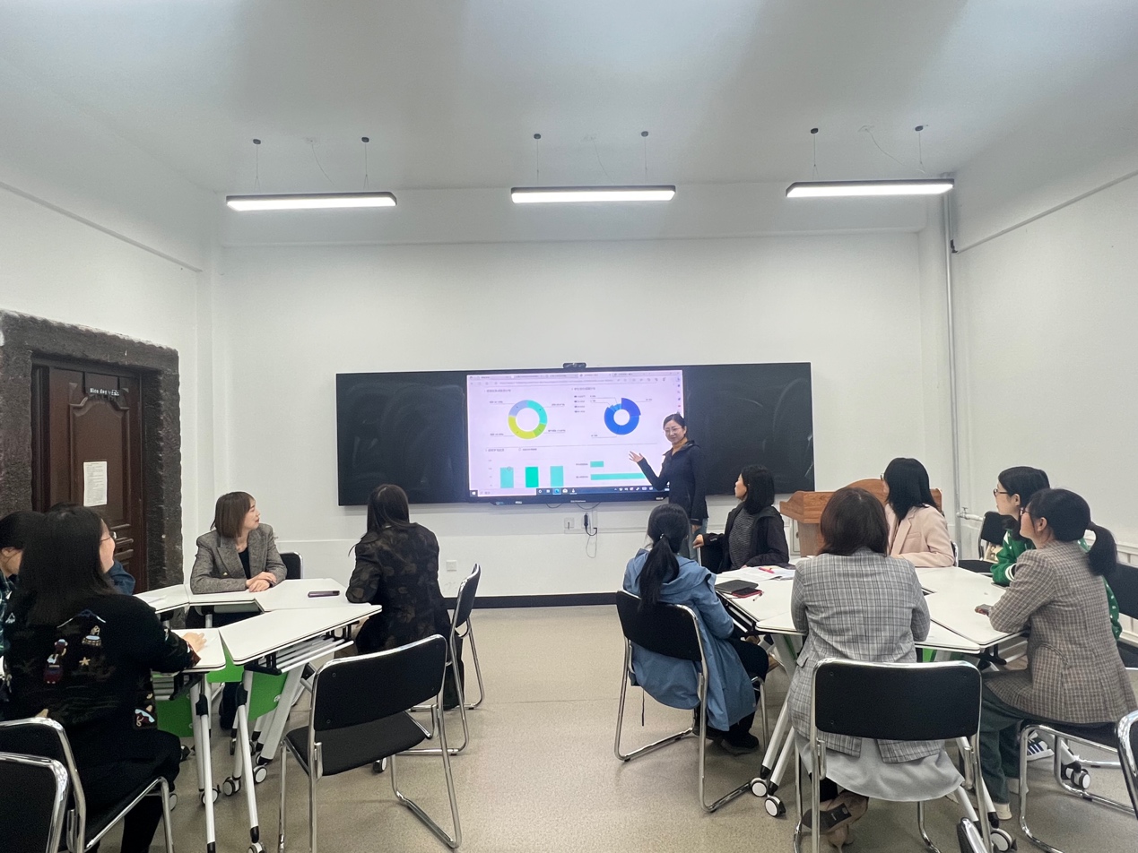 此次集体备课活动以“线上线下混合式教学”在大学英语教学中的应用为主题,崔莹莹老师对课程组自建课程《大学英语3》的内容特点以及优势进行了详细的介绍。结合自身在日常教学活动中积累下的关于学习通平台的教学经验进行了分享,为新教师讲解了学习通平台的课上、课下使用方法。建议使用课前点名、课中活动、课后成绩反馈,这样一套完整的教学流程,打破教学的时空限制,充分调动学生的学习兴趣和积极性。如:平台会根据学生的学习进度、活跃度、线上考试成绩自动给予结果评价,教师也可以根据线上平台生成的学习数据及时调整教学策略。随后,与会教师对如何进行线上线下教学的深度融合纷纷发表看法。