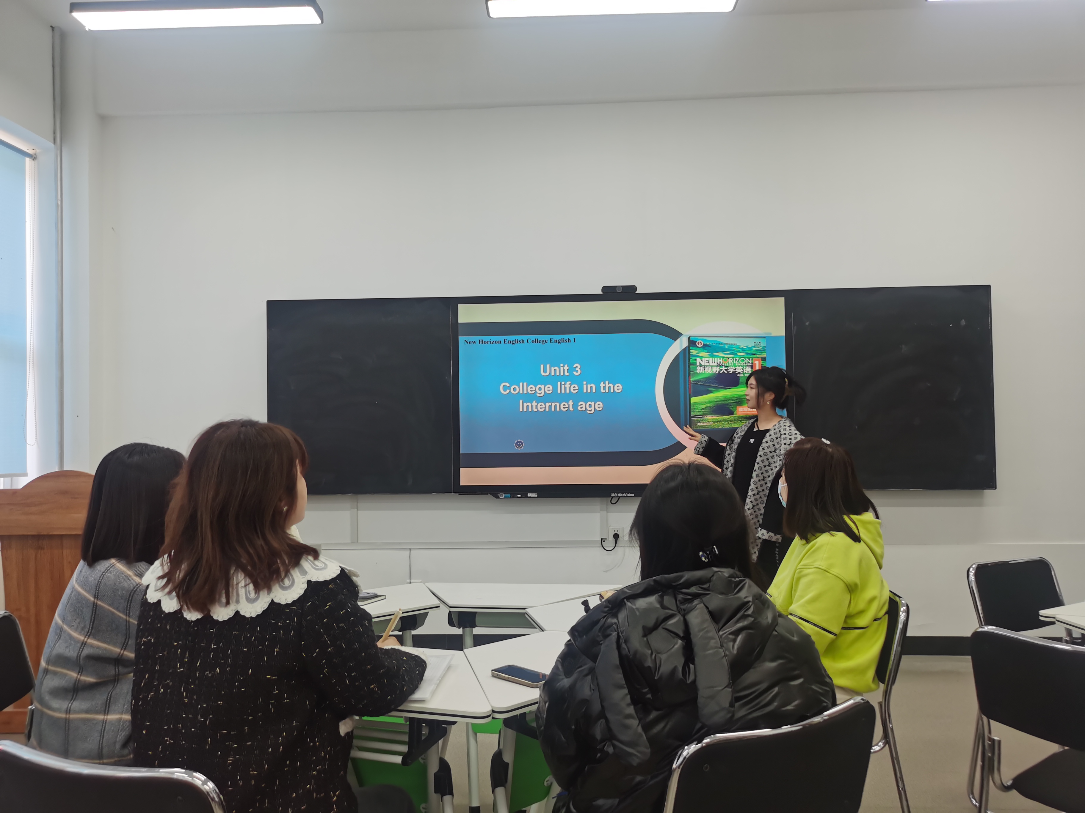 杨威老师对本单元的整体设计及相关备课思路进行说课,分享经验。她就课程的教学环节、教学方法、教学手段及教学重难点进行了详细讲解,增强了教学设计的针对性和实效性。创新交互式、浸润式、动态体验式的教学模式,能激发学生主动探索知识的动力和热情,让大学英语教学鲜活起来。