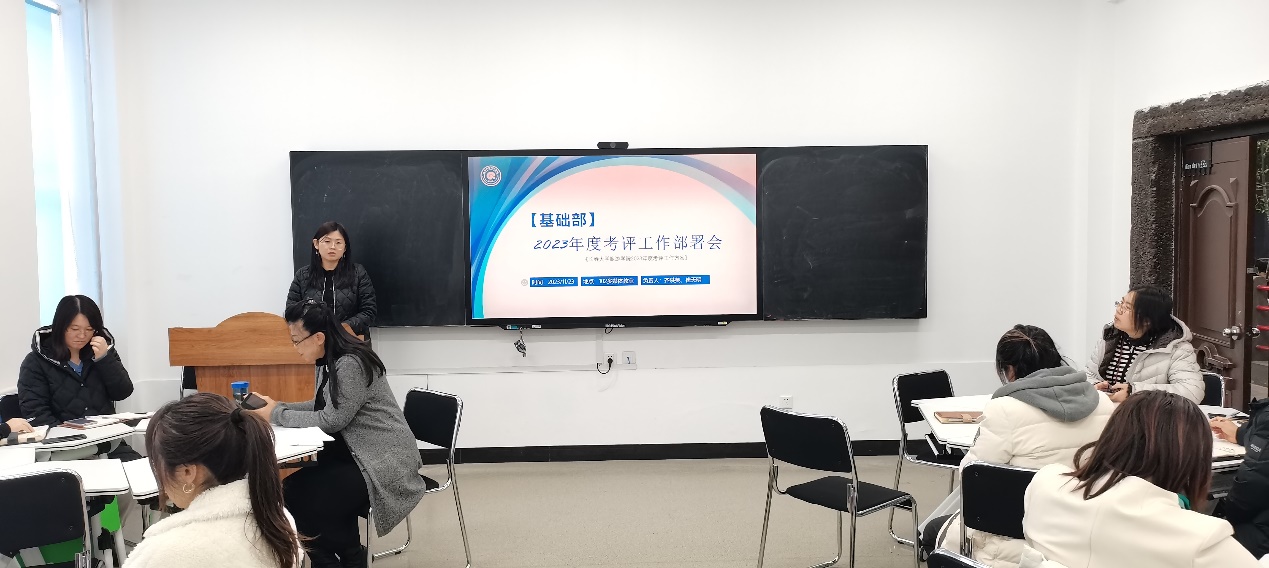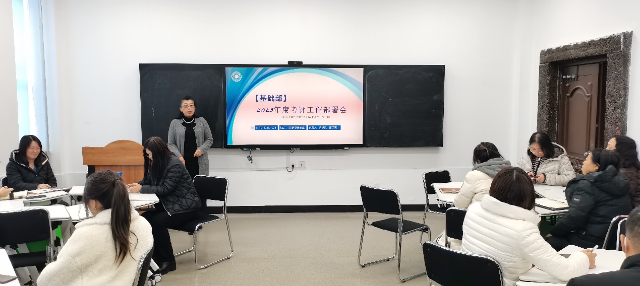 11月23日下午13:50,基础部在102教室召开2023年度考评工作布署会。基础部主任齐洪英主持,基础部副主任崔天明、基础部党总支副书记王落茹及基础部全体教职工参加。